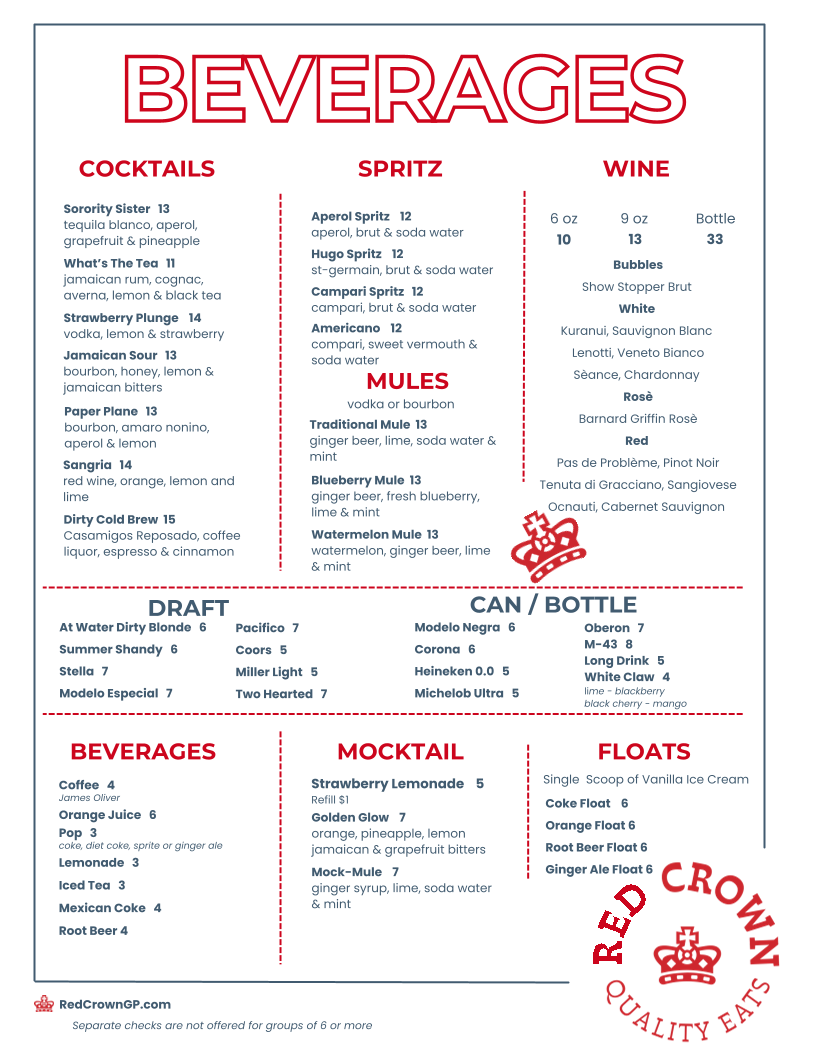 When you step into Red Crown Cantina, you're in for a treat. Located at 15301 Kercheval Ave, Grosse Pointe Park, MI, this spot offers a vibrant menu that’s as bold as its atmosphere. The Red Crown Cantina Menu features a mix of classic and creative dishes, each crafted to satisfy whatever you're craving. From flavorful tacos and sizzling fajitas to refreshing margaritas and guacamole made fresh to order, there’s something here to please everyone. Whether you’re stopping by for a casual meal with friends or celebrating a special occasion, the menu is designed to deliver comfort with a twist. And don’t forget the homemade salsas, which pack the perfect punch to complement your meal. Every dish is made with care, ensuring that every bite feels like a burst of flavor.